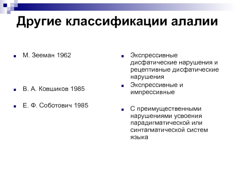 Слайд 7Другие классификации алалии