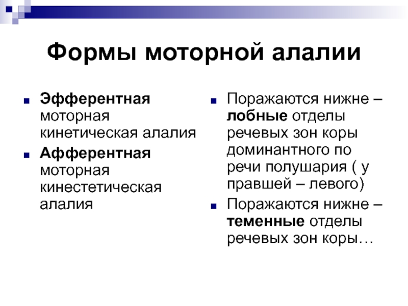 Слайд 9Формы моторной алалии