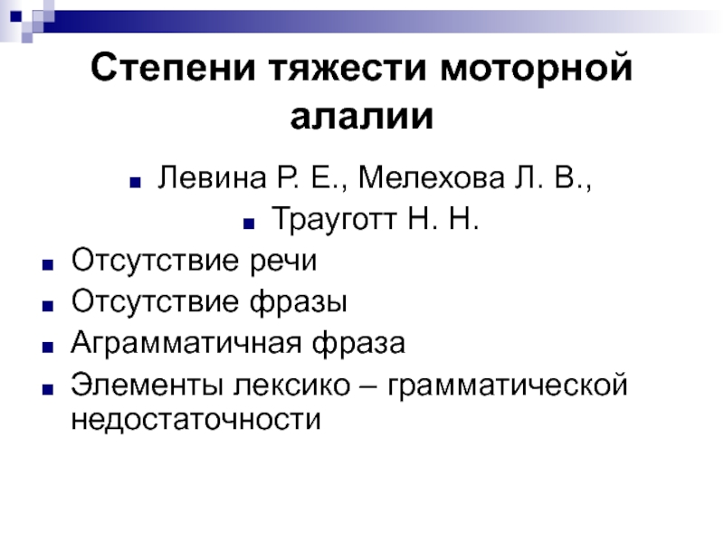 Слайд 11Степени тяжести моторной алалии