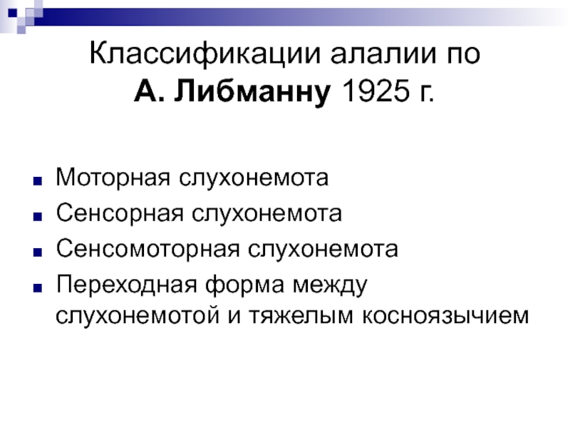 Слайд 6Классификации алалии по