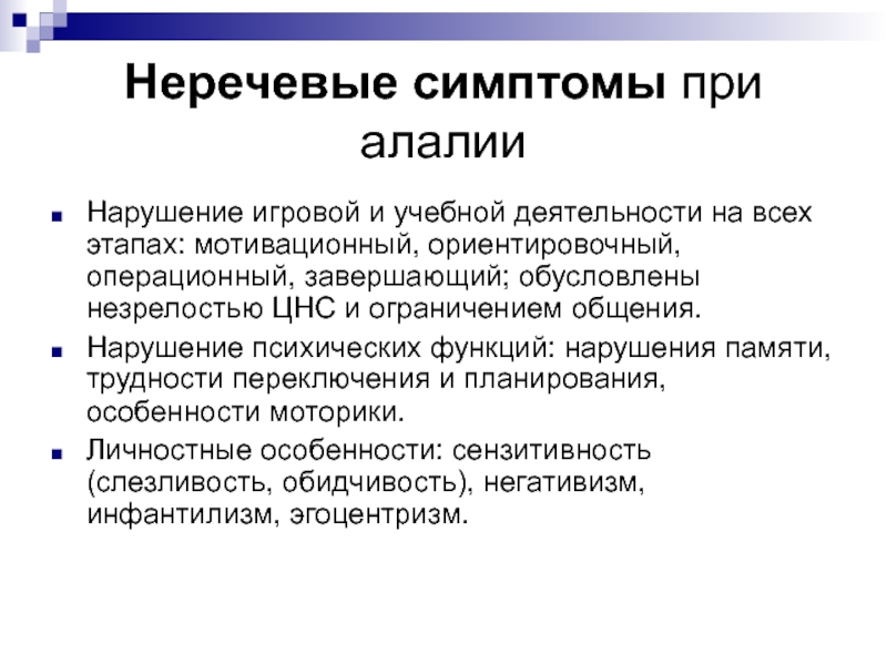 Слайд 14Неречевые симптомы при алалии