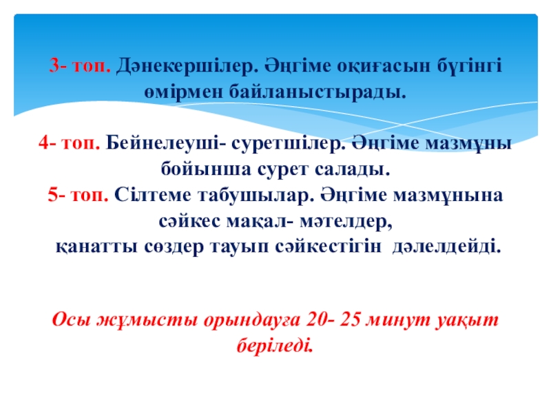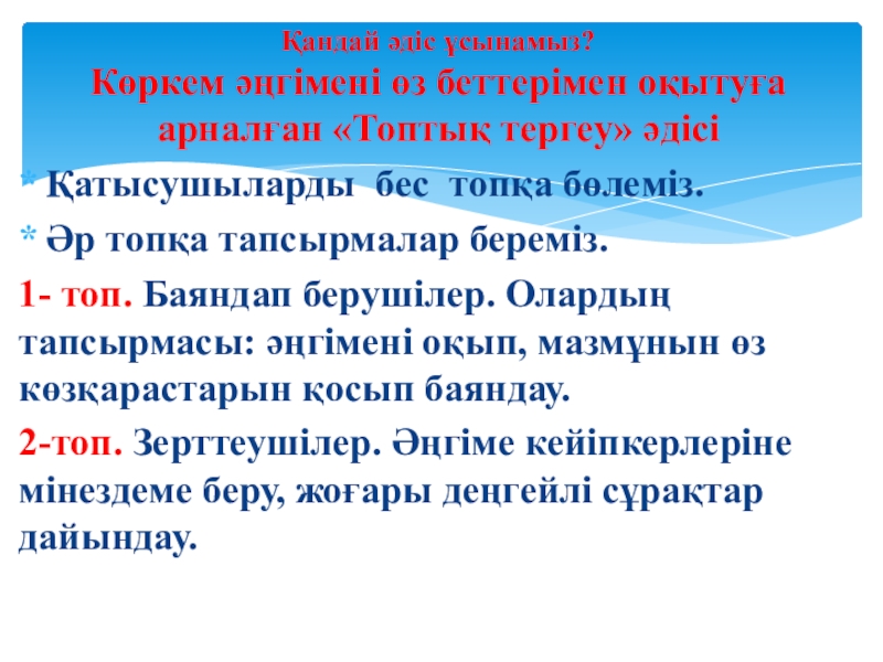 Топтардың жұмысын презентациялауда «Аквариум» стратегиясын ұсынамыз.