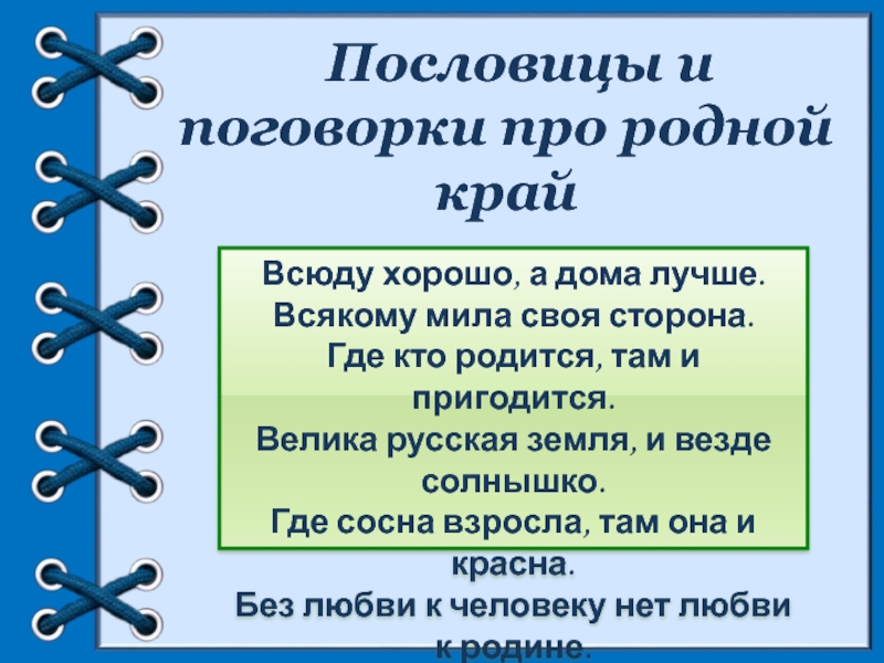 Слайд 77 Пословицы и поговорки про родной край