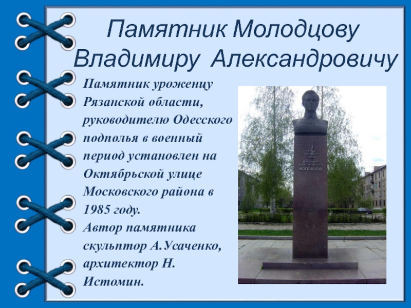 Слайд 33Памятник Молодцову