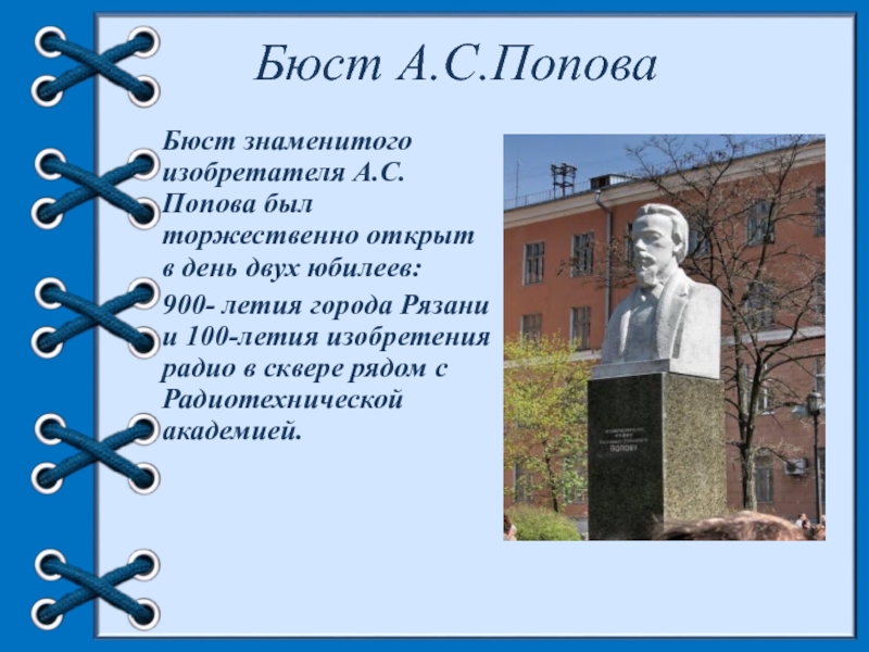 Слайд 30Бюст А.С.Попова