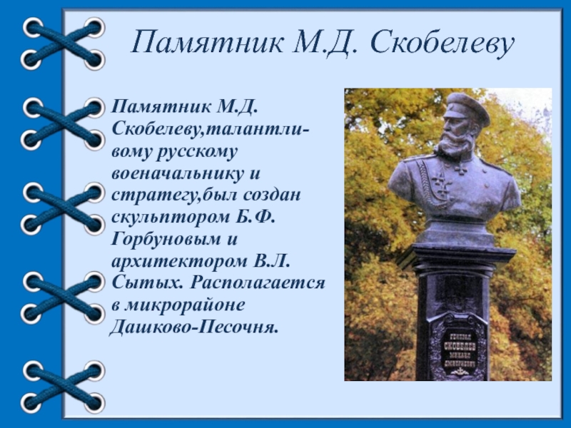 Слайд 27Памятник М.Д. Скобелеву
