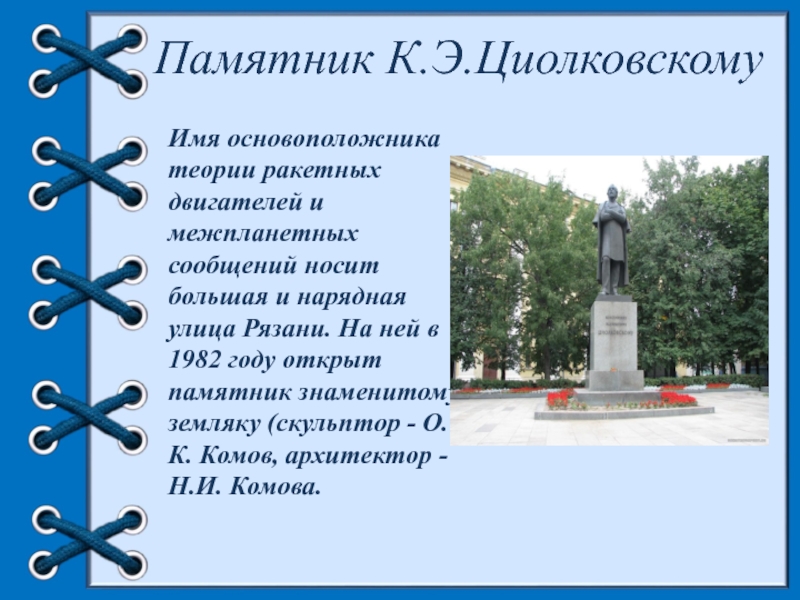 Слайд 17Памятник К.Э.Циолковскому