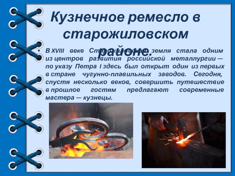 Слайд 59Кузнечное ремесло в старожиловском районе.