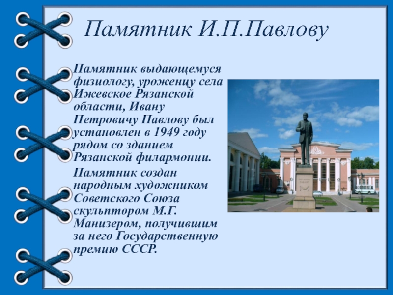 Слайд 16Памятник И.П.Павлову
