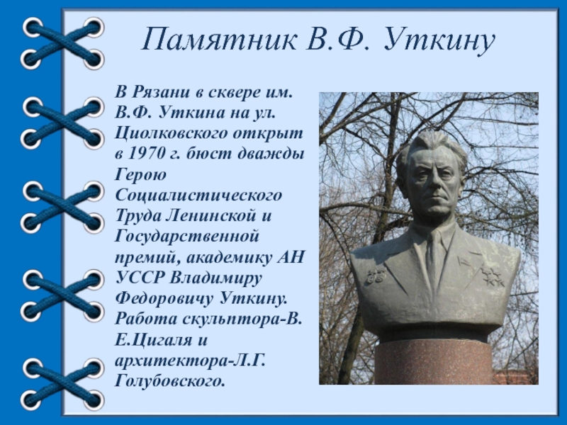 Слайд 26Памятник В.Ф. Уткину