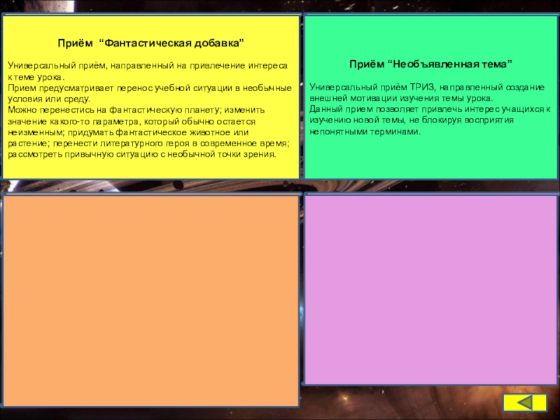 Универсальный приём ТРИЗ, направленный создание внешней мотивации изучения темы урока.