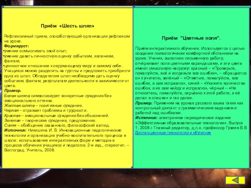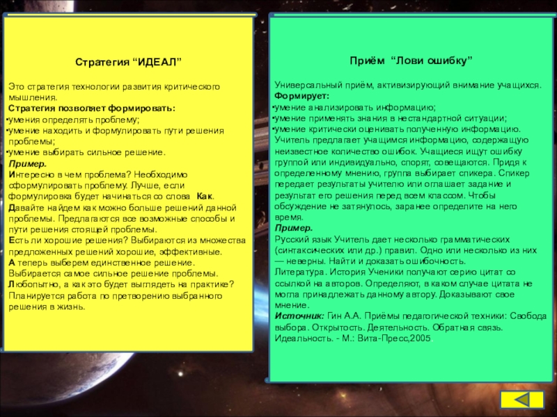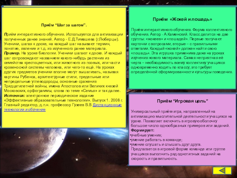 Источник: Гин А.А. Приёмы педагогической техники: Свобода выбора. Открытость. Деятельность. Обратная связь. Идеальность. - М.: Вита-Пресс,2005.
