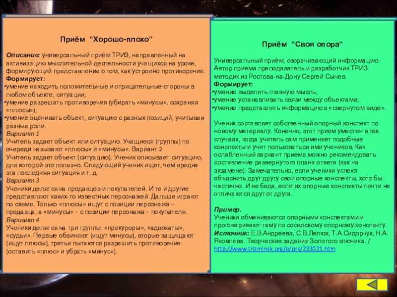 Универсальный приём ТРИЗ, направленный на активизацию мыслительной деятельности учащихся на уроке.