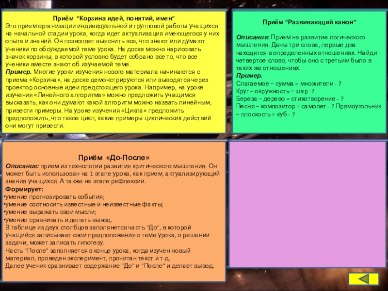 Приём “Развивающий канон”