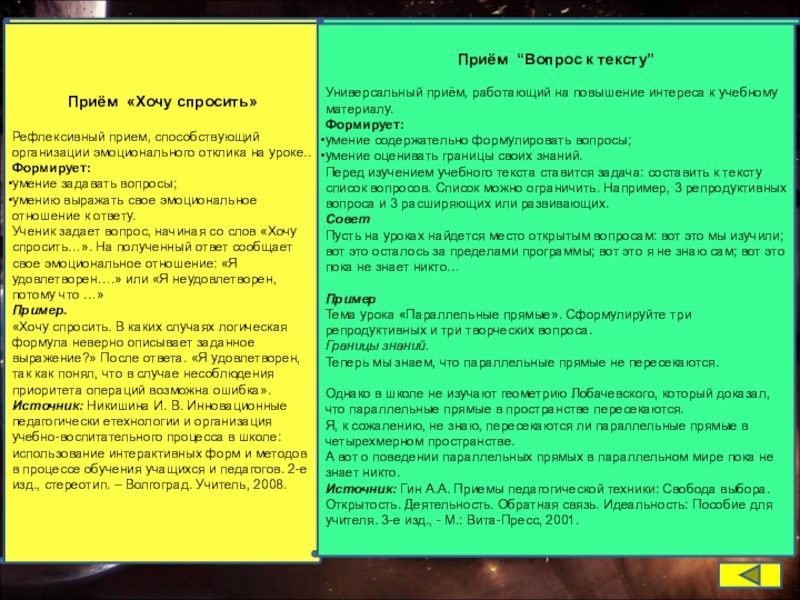 Приём “Вопрос к тексту”
