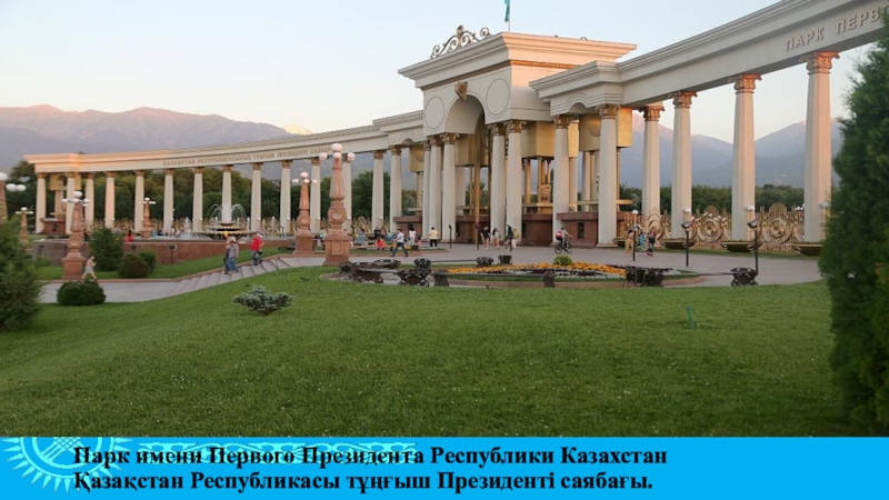 Слайд 10Парк имени Первого Президента Республики Казахстан Қазақстан Республикасы тұңғыш Президенті саябағы.