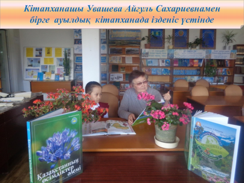 Слайд 40Кітапханашы Увашева Айгуль Сахариевнамен