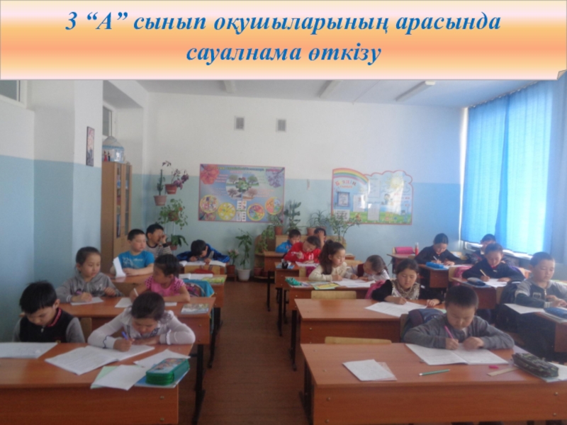 Слайд 423 “А” сынып оқушыларының арасында сауалнама өткізу