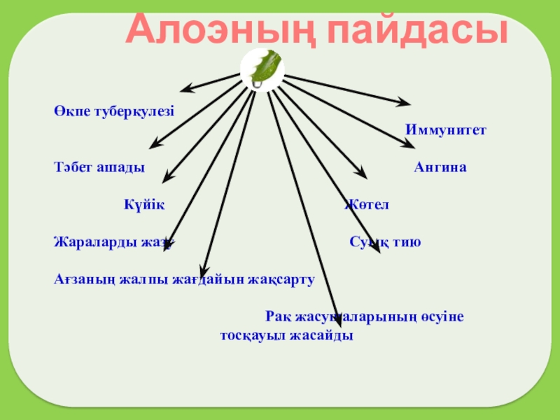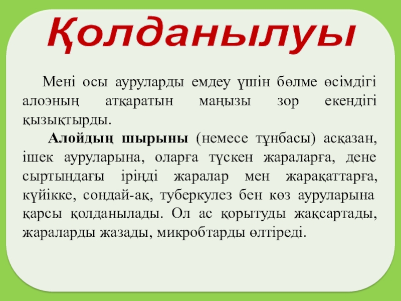 -Алоэ өсімдігінің емдік қасиеттерінің тиімді пайдаланудың жолдары көрсетілді.