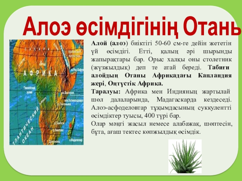 Слайд 1Алоэ өсімдігінің емдік қасиеттері