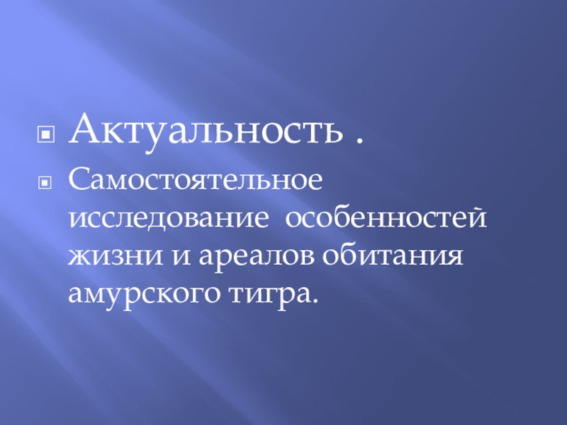 Самостоятельное исследование особенностей жизни и ареалов обитания амурского тигра.
