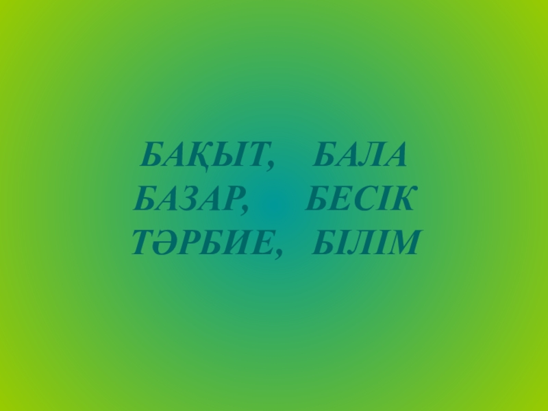 Слайд 21БАҚЫТ, БАЛА БАЗАР, БЕСІК ТӘРБИЕ, БІЛІМ