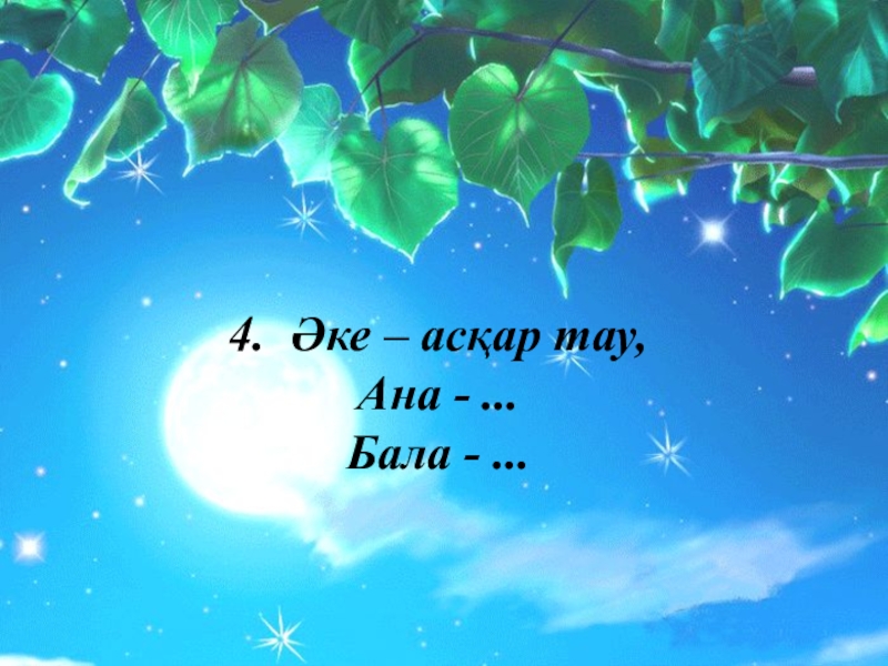 4. Әке – асқар тау,  Ана - ... Бала - ...