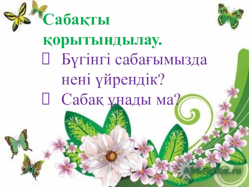 Сабақты қорытындылау.Бүгінгі сабағымызда нені үйрендік? Сабақ ұнады ма?