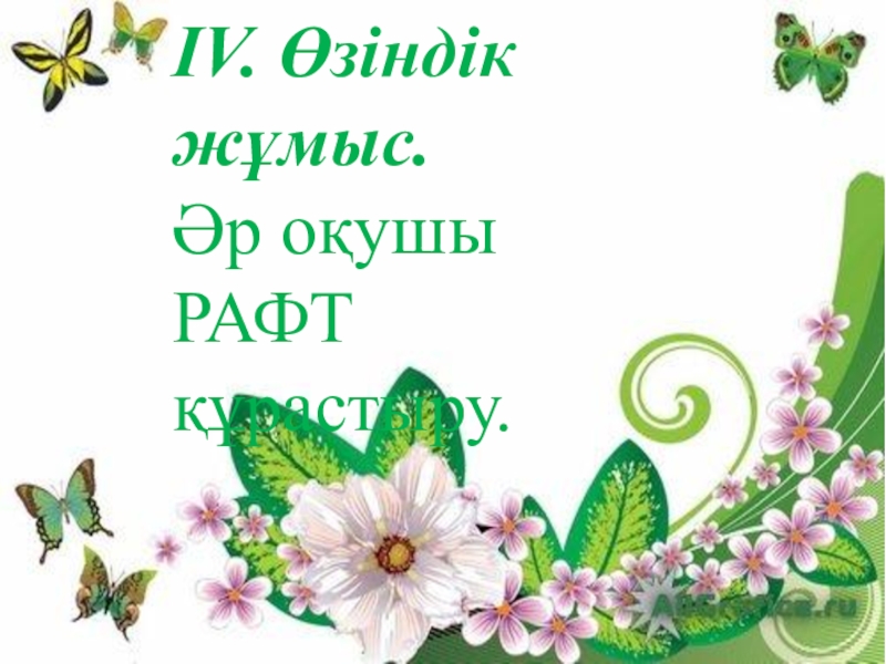 IV. Өзіндік жұмыс.Әр оқушы РАФТ құрастыру.