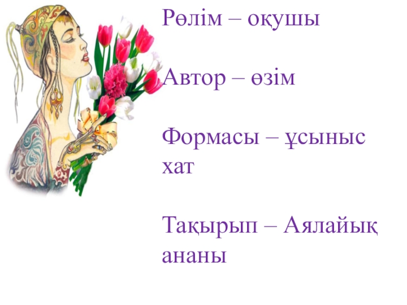Рөлім – оқушы Автор – өзім Формасы – ұсыныс хат Тақырып – Аялайық ананы
