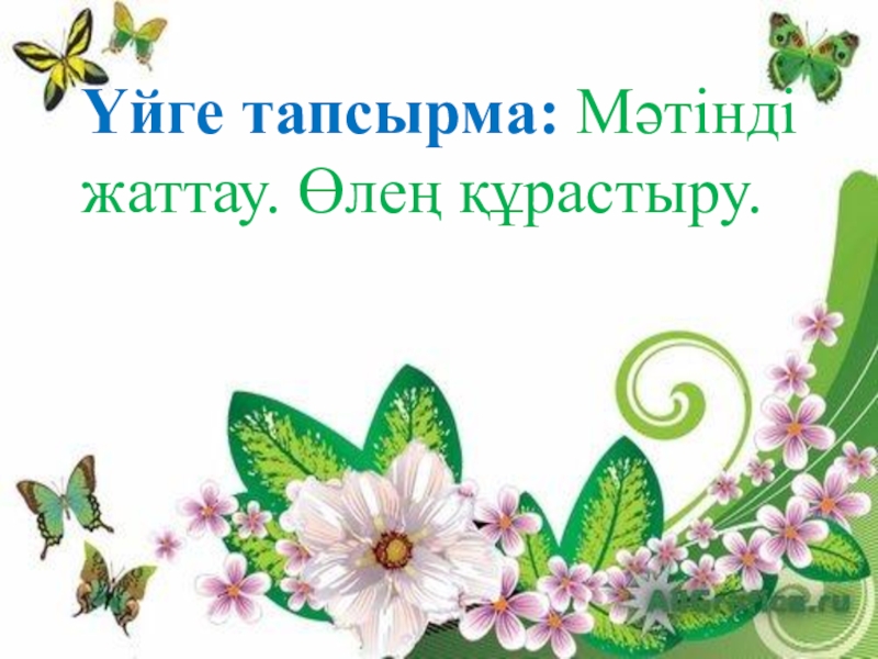 Слайд 23Үйге тапсырма: Мәтінді жаттау. Өлең құрастыру.