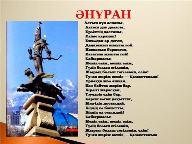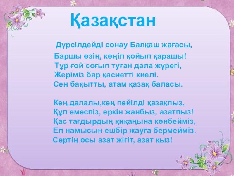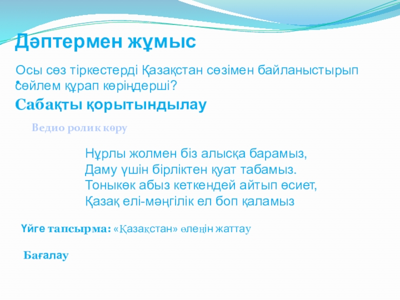 Үйге тапсырма: «Қазақстан» өлеңін жаттау