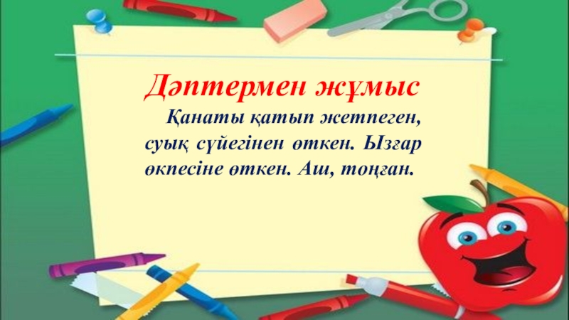 Слайд 11Дәптермен жұмыс