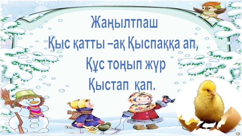 Жаңылтпаш Қыс қатты –ақ Қыспаққа ап,  Құс тоңып жүр Қыстап қап.