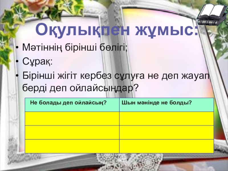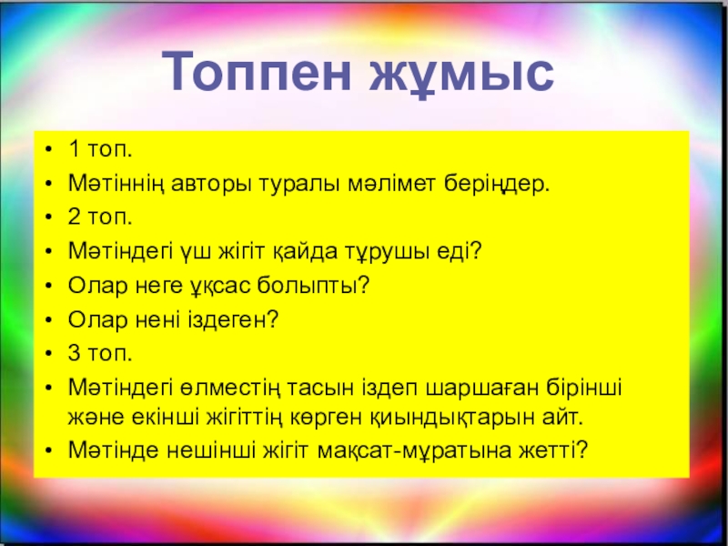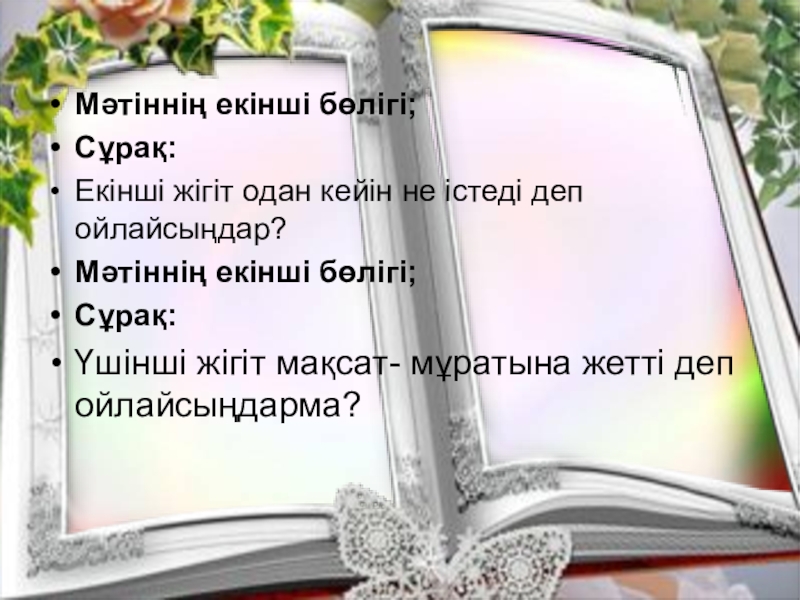 жалғастырып оқу, әңгіменің өзекті түйінді ойын ашуға жағдай жасау, өз бетінше