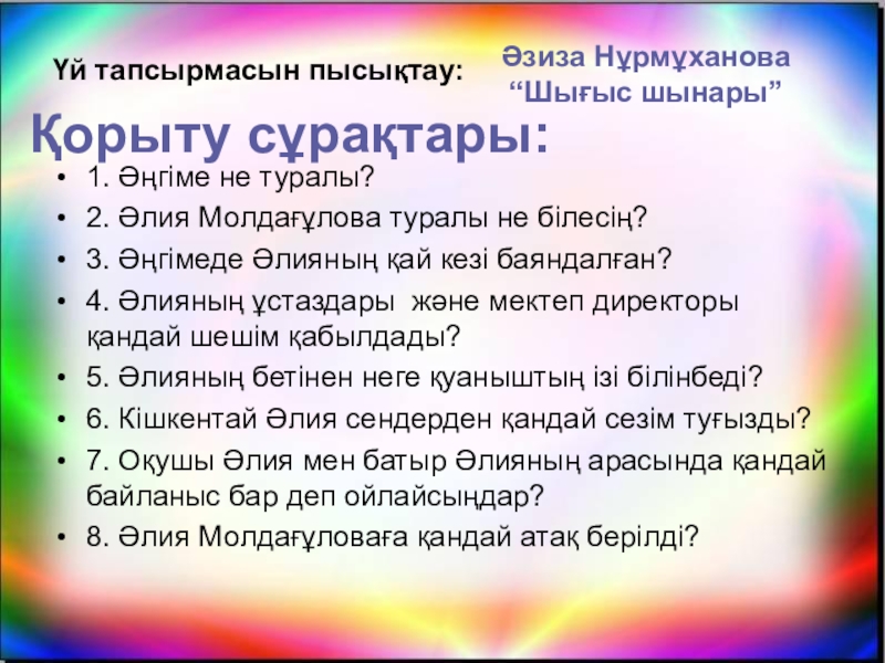 туралы хикая» атты әңгімесін дұрыс, түсініп,