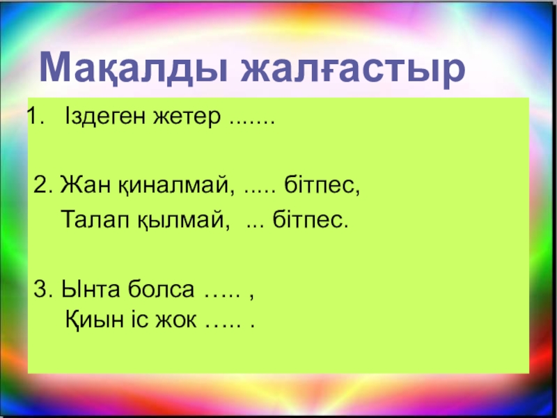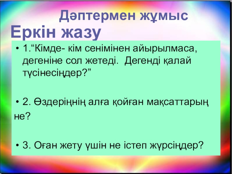 байланыстырып сөйлеуін, шығармашылық ойлауын дамыту.