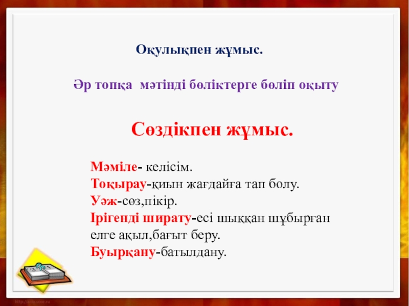Әр топқа мәтінді бөліктерге бөліп оқыту