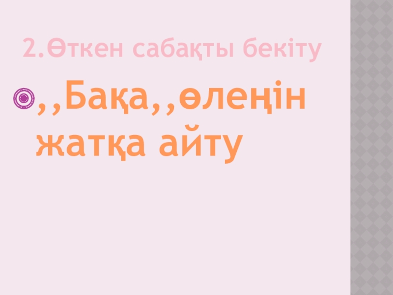 2.Өткен сабақты бекіту,,Бақа,,өлеңін жатқа айту