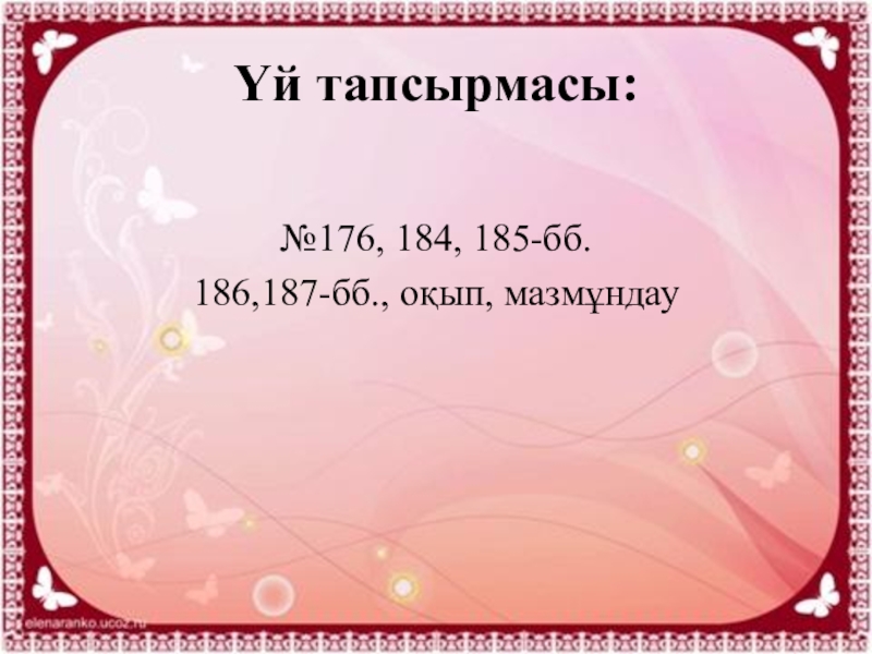 Үй тапсырмасы:№176, 184, 185-бб.186,187-бб., оқып, мазмұндау