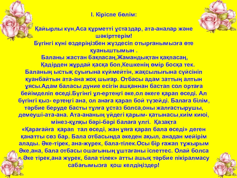 Слайд 4І. Кіріспе бөлім: