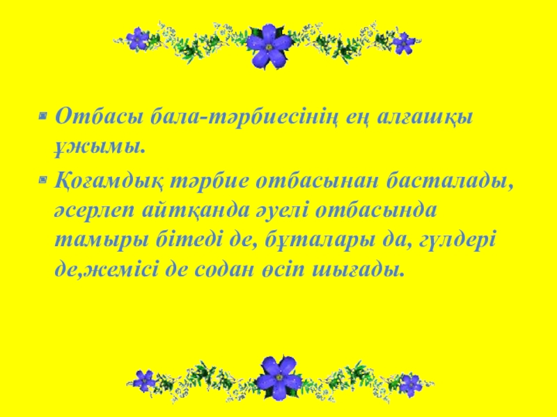 Қоғамдық тәрбие отбасынан басталады,әсерлеп айтқанда әуелі отбасында