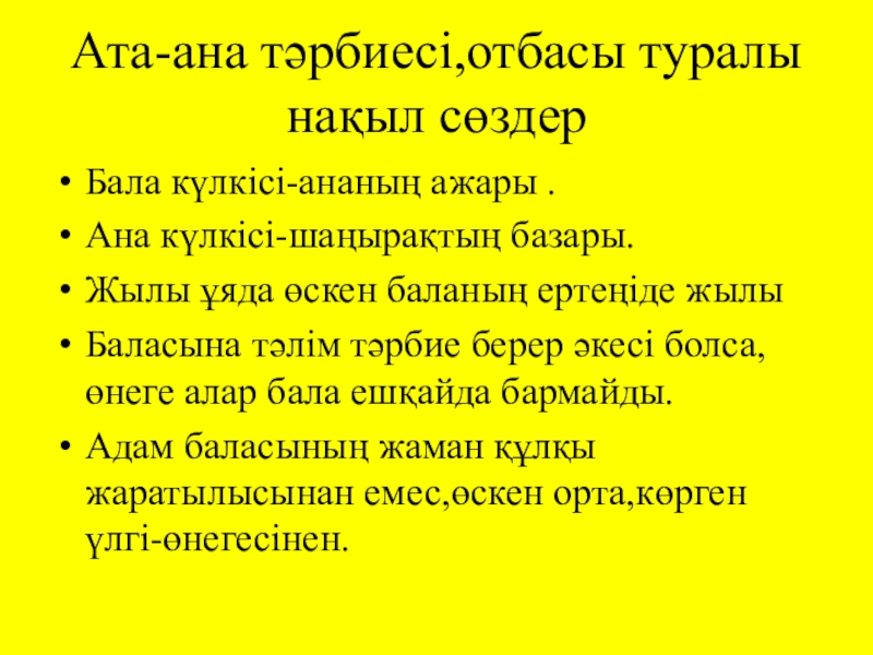 Слайд 28Ата-ана тәрбиесі,отбасы туралы нақыл сөздер