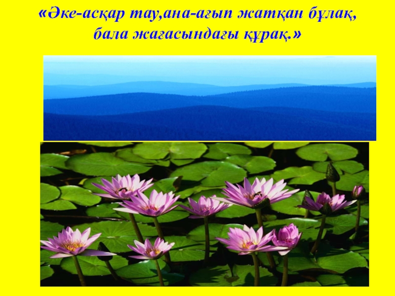 Слайд 32«Әке-асқар тау,ана-ағып жатқан бұлақ,бала жағасындағы құрақ.»