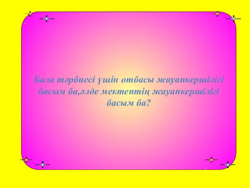 Слайд 21Бала тәрбиесі үшін отбасы жауапкершілігі