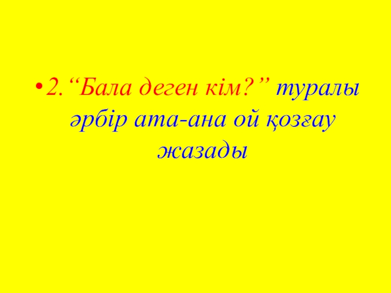 Слайд 82.“Бала деген кім?” туралы әрбір ата-ана ой қозғау жазады