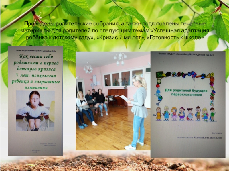 Слайд 3Проведены родительские собрания, а также подготовлены печатные материалы для родителей по