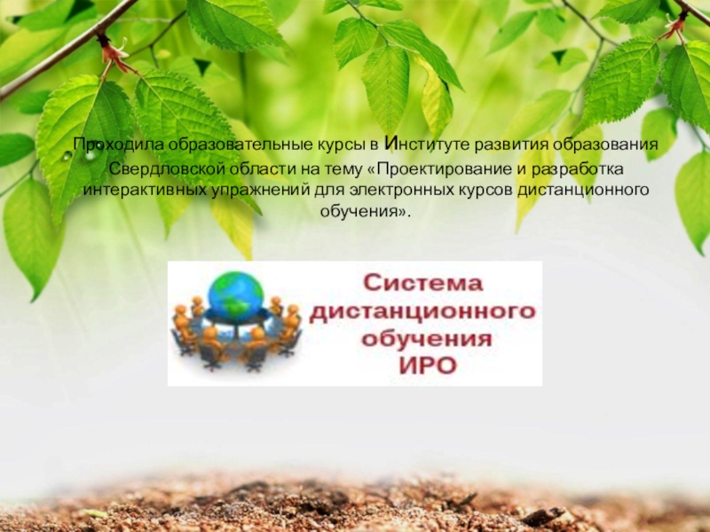 Слайд 5Проходила образовательные курсы в институте развития образования Свердловской области на тему