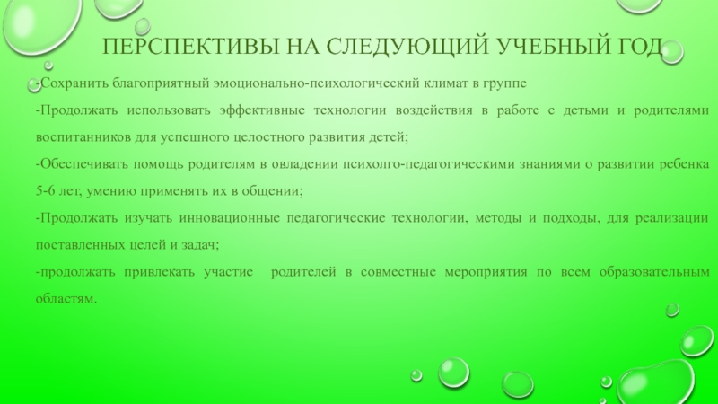 -Продолжать изучать инновационные педагогические технологии, методы и подходы, для реализации поставленных целей и задач;