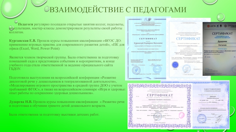 Курганская Е.В. Прошла курсы повышения квалификации «ФГОС ДО: применение игровых практик для современного развития детей», «ПК для офиса (Excel, Word, Power Point)